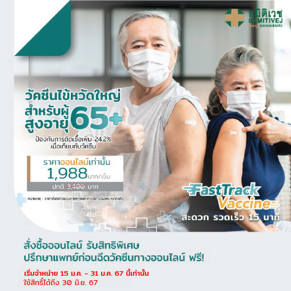 Only for Fast Track Vaccine at Samitivej Chonburi Hospital Fast-track influenza vaccine for seniors aged 65 years and over with New Influenza Vaccine. Prevent influenza infection 24.2% increase, compared to those who received the usual four-strain influenza vaccine.