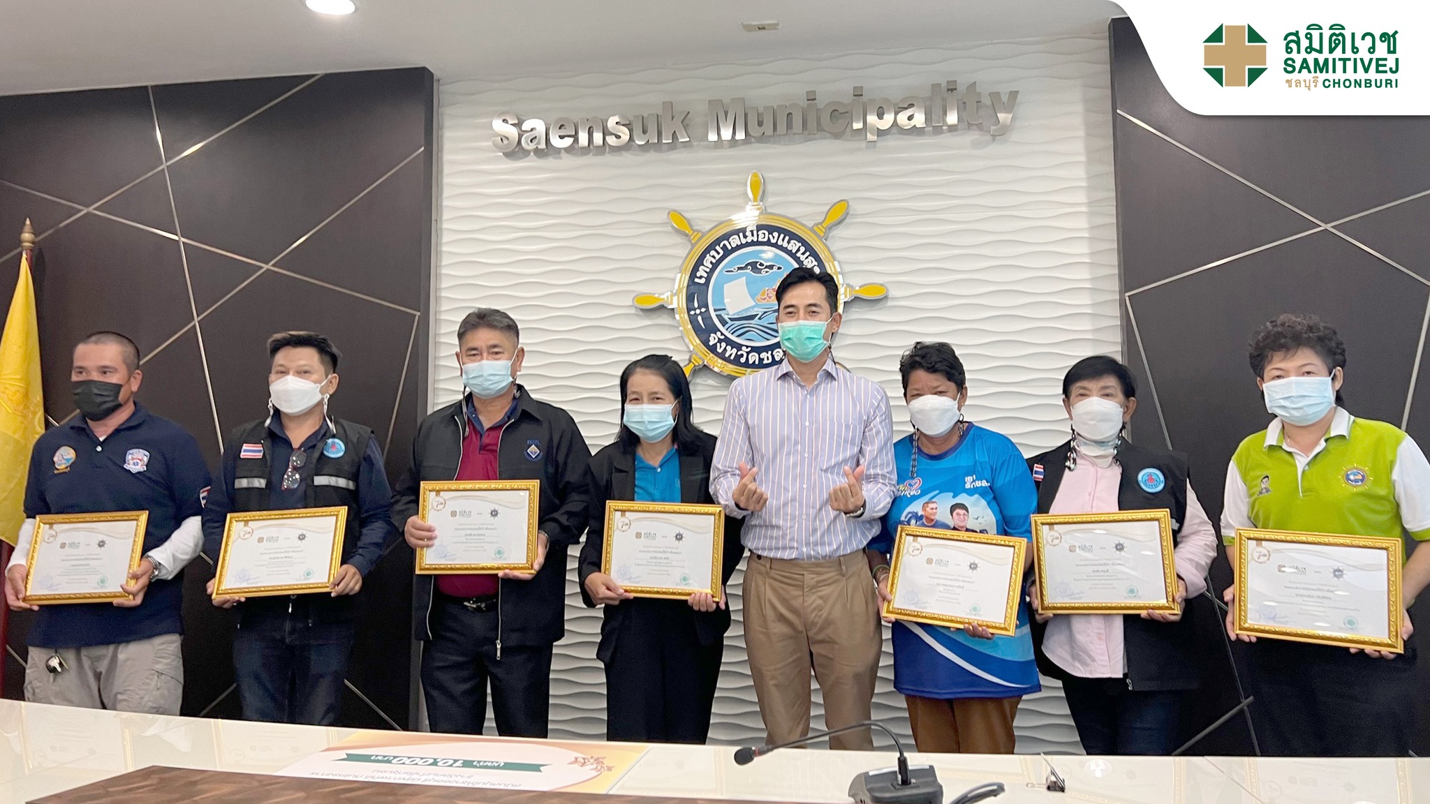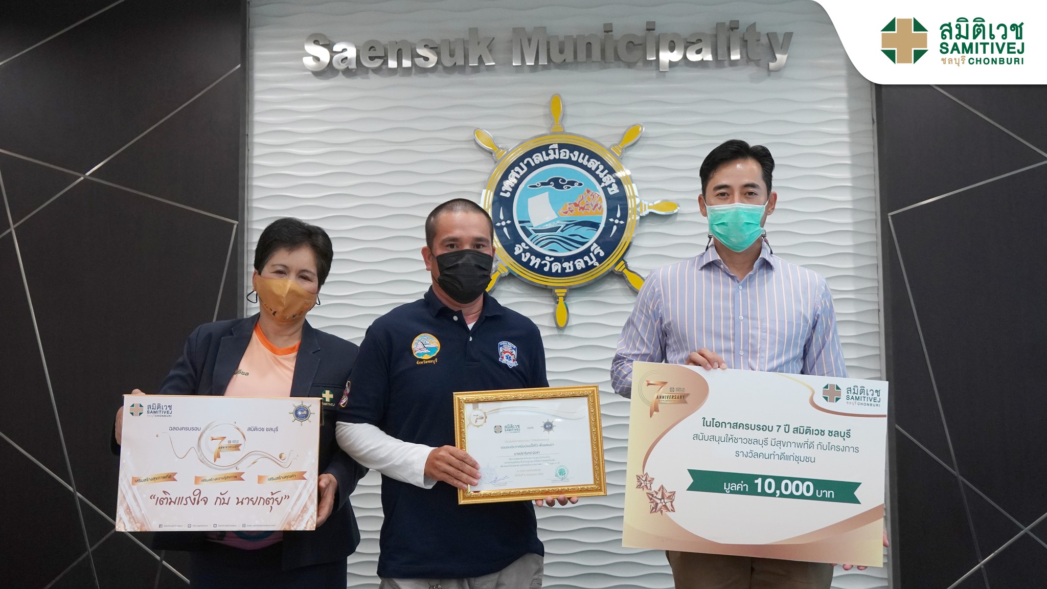 เมื่อวันที่ 9 สิงหาคม 2565 คุณรัชฎาพร สุวรรณรัตน์ ผู้อำนวยการฝ่ายการพยาบาล โรงพยาบาลสมิติเวชชลบุรี ร่วมกับเทศบาลเมืองแสนสุข นำโดยนายกเทศมนตรี นายณรงค์ชัย คุณปลื้ม จัดกิจกรรม “เติมแรงใจ ไปกับนายกตุ้ย” ซึ่งเป็นกิจกรรมที่ 3 เรื่องเสริมสร้างคุณค่าต่อสังคม โดยร่วมค้นหา บุคคลที่ เสียสละ อุทิศตนช่วยเหลือสังคมอย่างต่อเนื่อง เพื่อเป็นการยกย่อง ให้กำลังใจคนทำดี และสนับสนุนให้เกิดเป็นนิเวศน์แห่งการแบ่งปันขึ้นในสังคม ในชุมชนเทศบาลเมืองแสนสุข 7 รางวัล ได้แก่