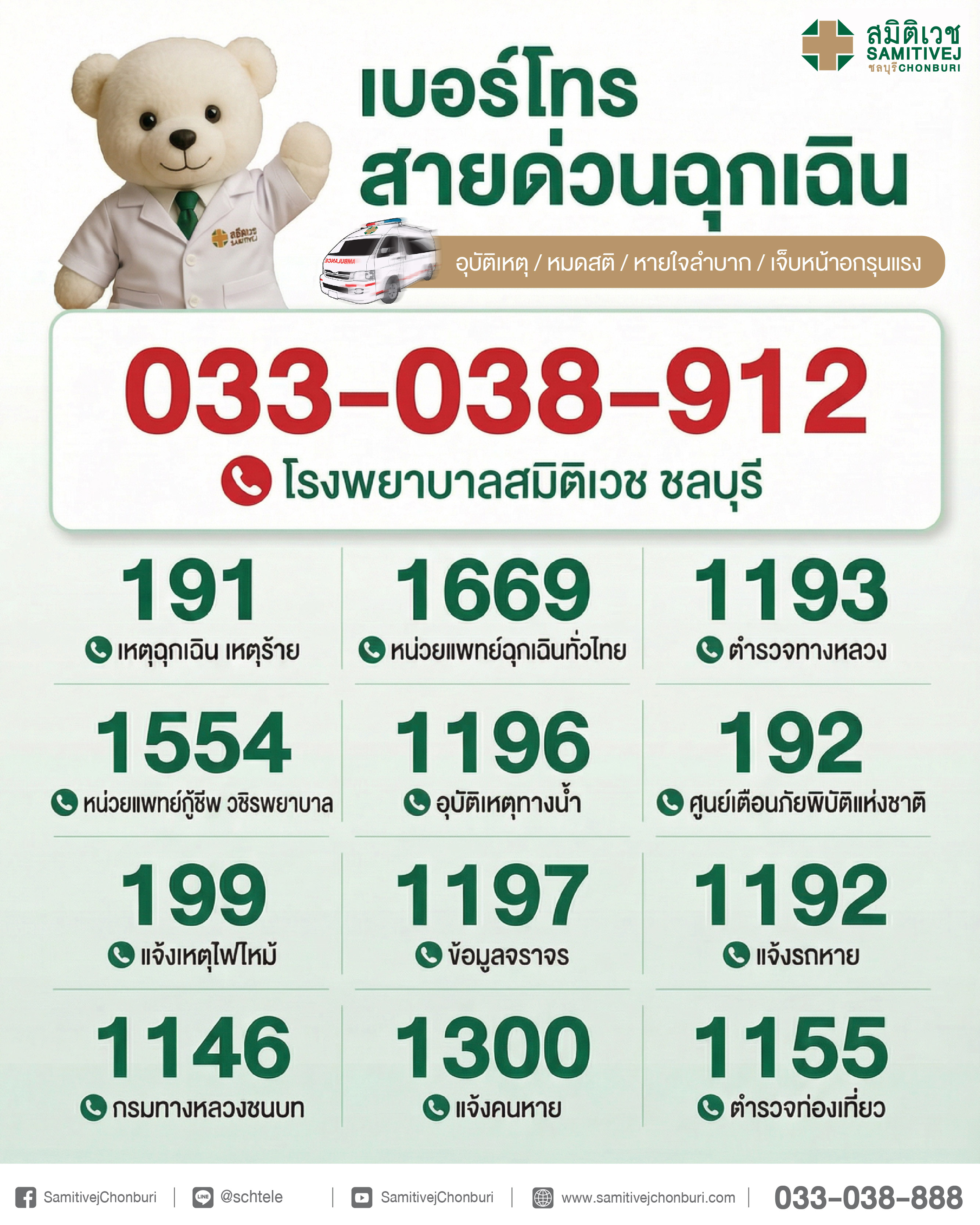 ฉุกเฉิน รพ.สมิติเวช ชลบุรี 033-038912