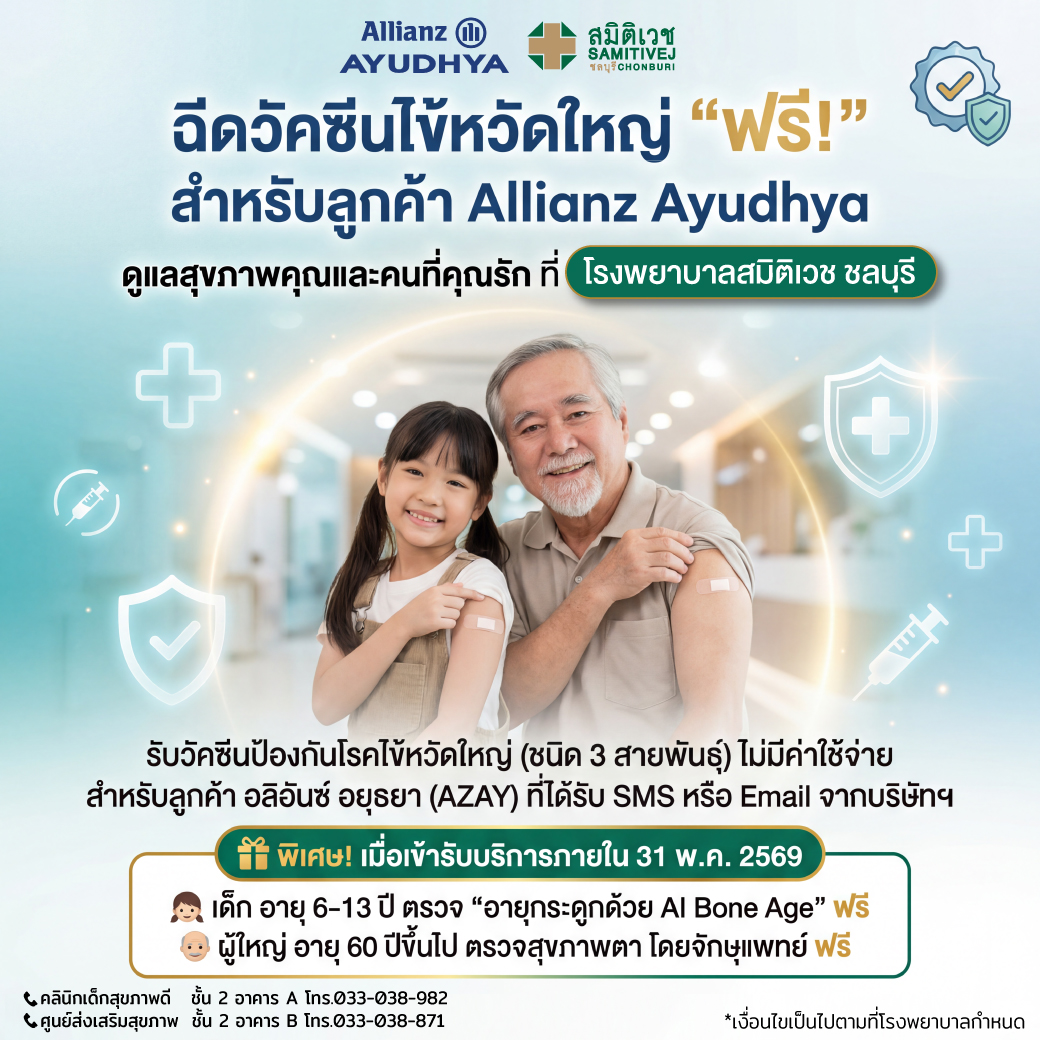 ฉีดวัคซีนไข้หวัดใหญ่ ฟรี สำหรับลูกค้า Allianz Ayudhya ที่ โรงพยาบาลสมิติเวช ชลบุรี