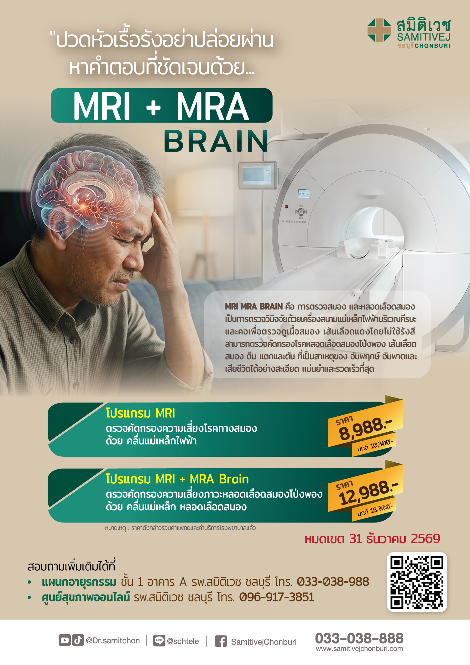 MRI Brain ตรวจคัดกรองความเสี่ยงโรคทางสมอง ด้วยคลื่นแม่เหล็กไฟฟ้า