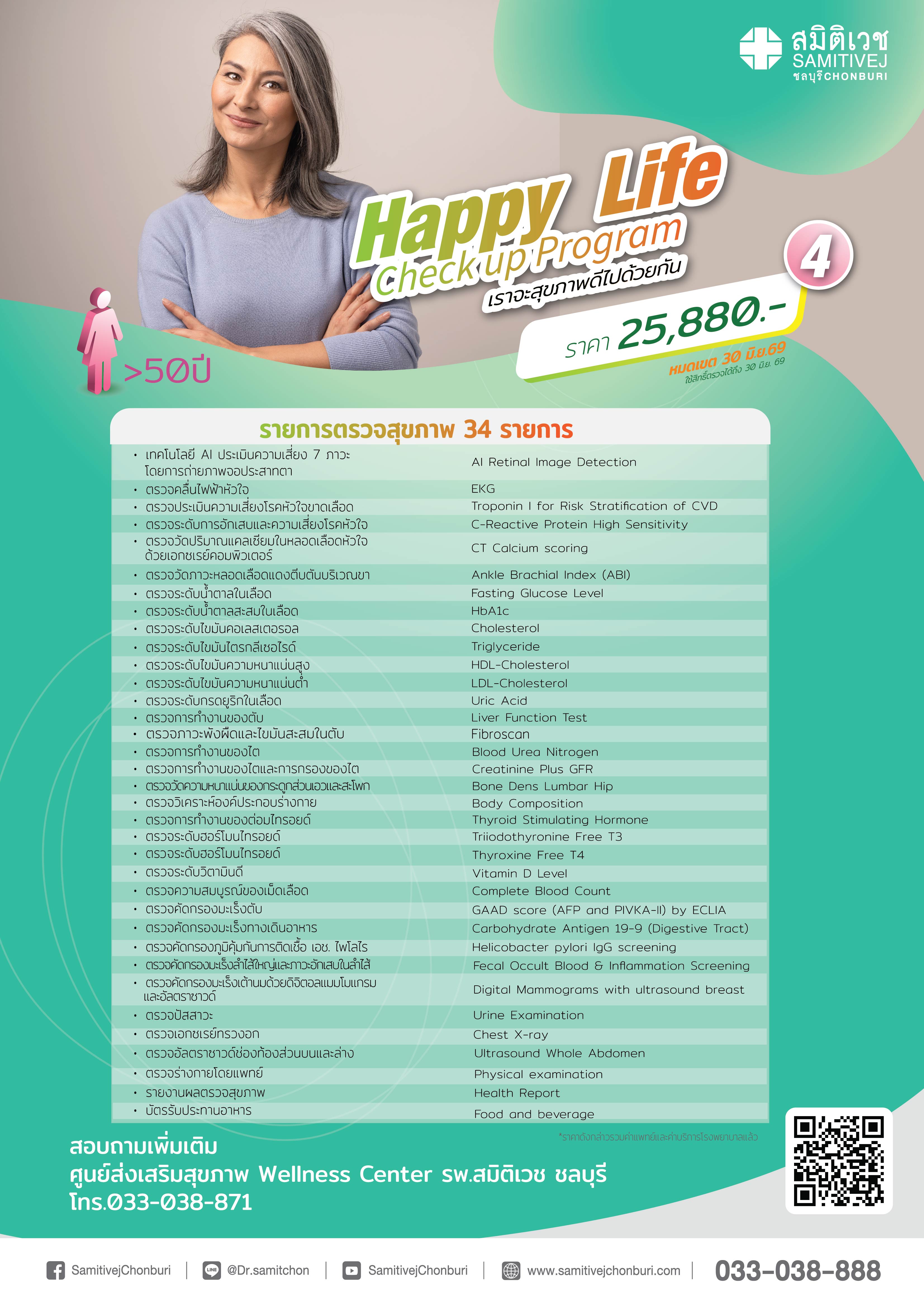 Happy Life 4 โปรแกรมตรวจสุขภาพ 34 รายการ สำหรับเพศหญิง อายุ 50 ปีขึ้นไป