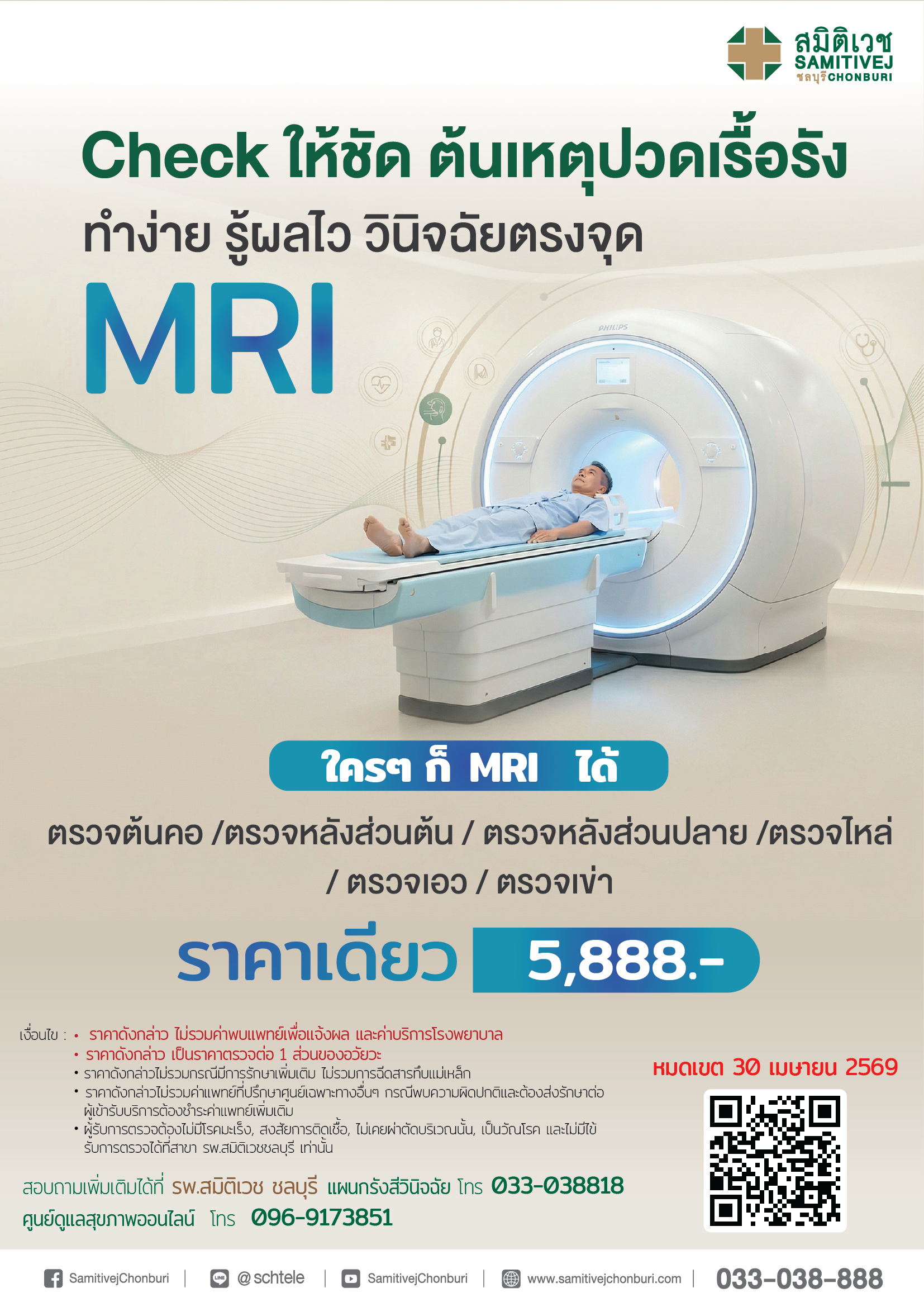 ราคาดังกล่าวไม่รวมกรณีมีการรักษาเพิ่มเติม ไม่รวมการฉีดสารทึบแม่เหล็ก