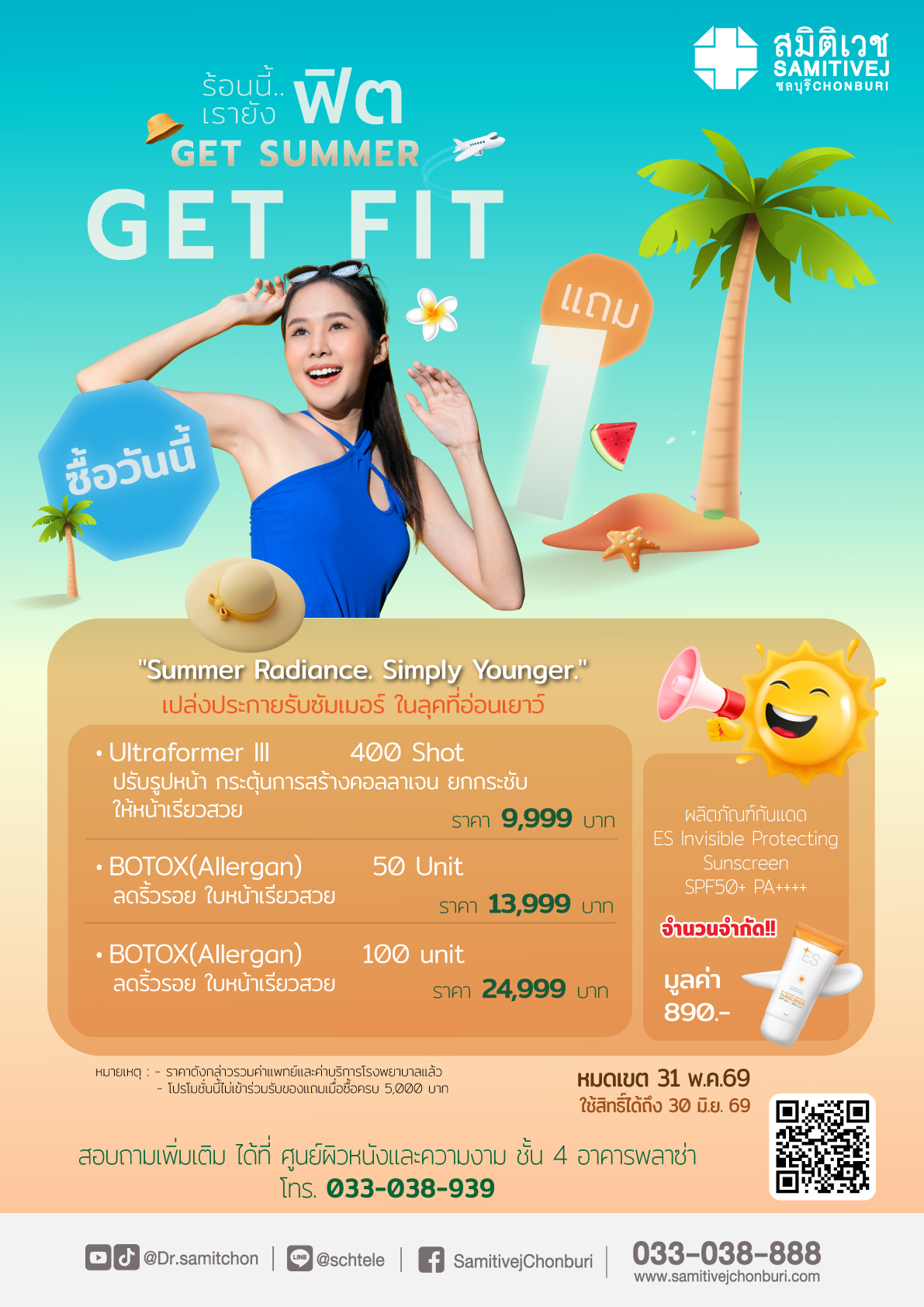 - สิทธิ์นี้ ไม่นับรวมยอดกับ แพ็กเกจตรวจสุขภาพ Get summer Get fit 1 แถม 1