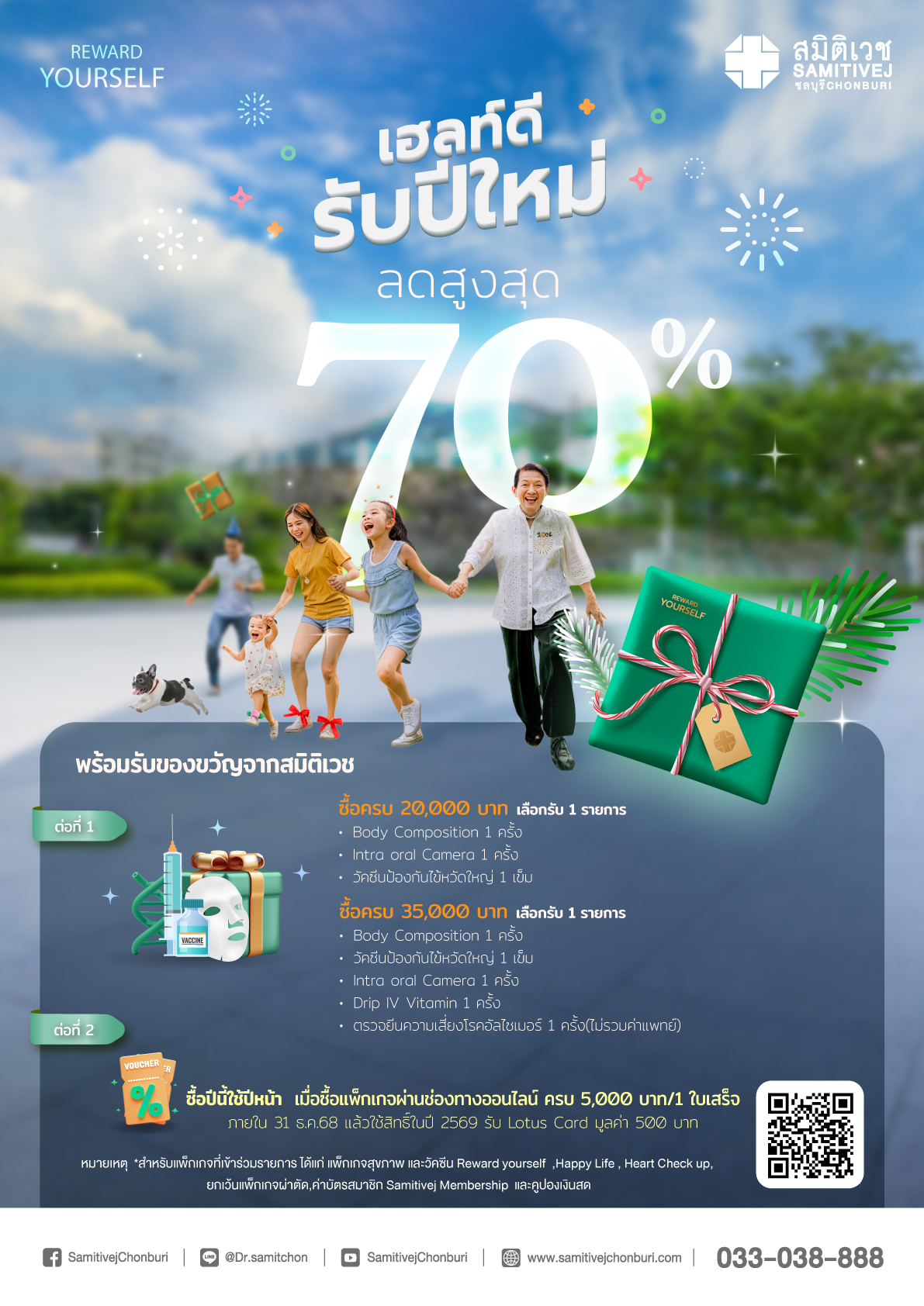 Reward Your Self เฮลท์ดี รับปีใหม่ ลดสูงสุด 70 % โปรแกรม 2026 Reward 3 Aging Wellness Plus ราคา 8,390 บาท โปรแกรมตรวจสุขภาพ ชาย/หญิง 23 รายการ