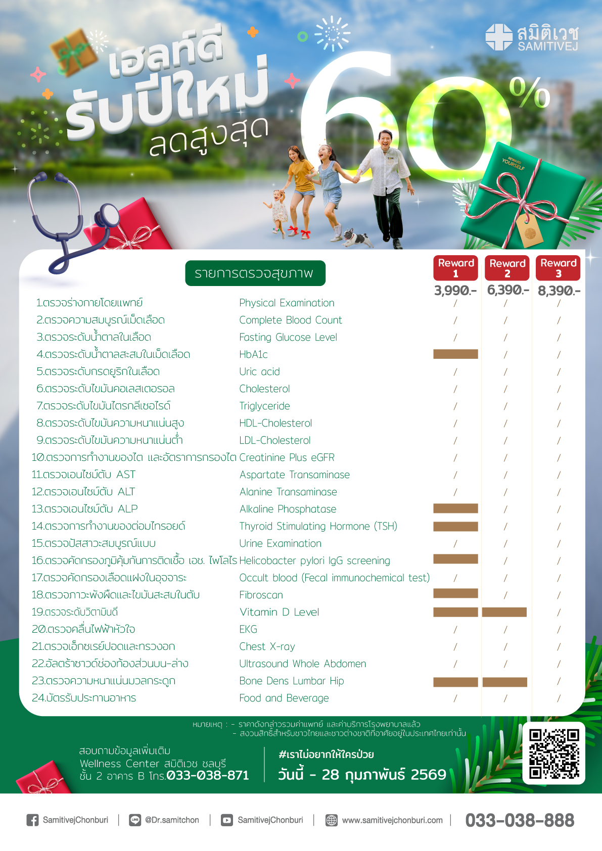 | รายการตรวจสุขภาพ | Reward 1 3,990.- |