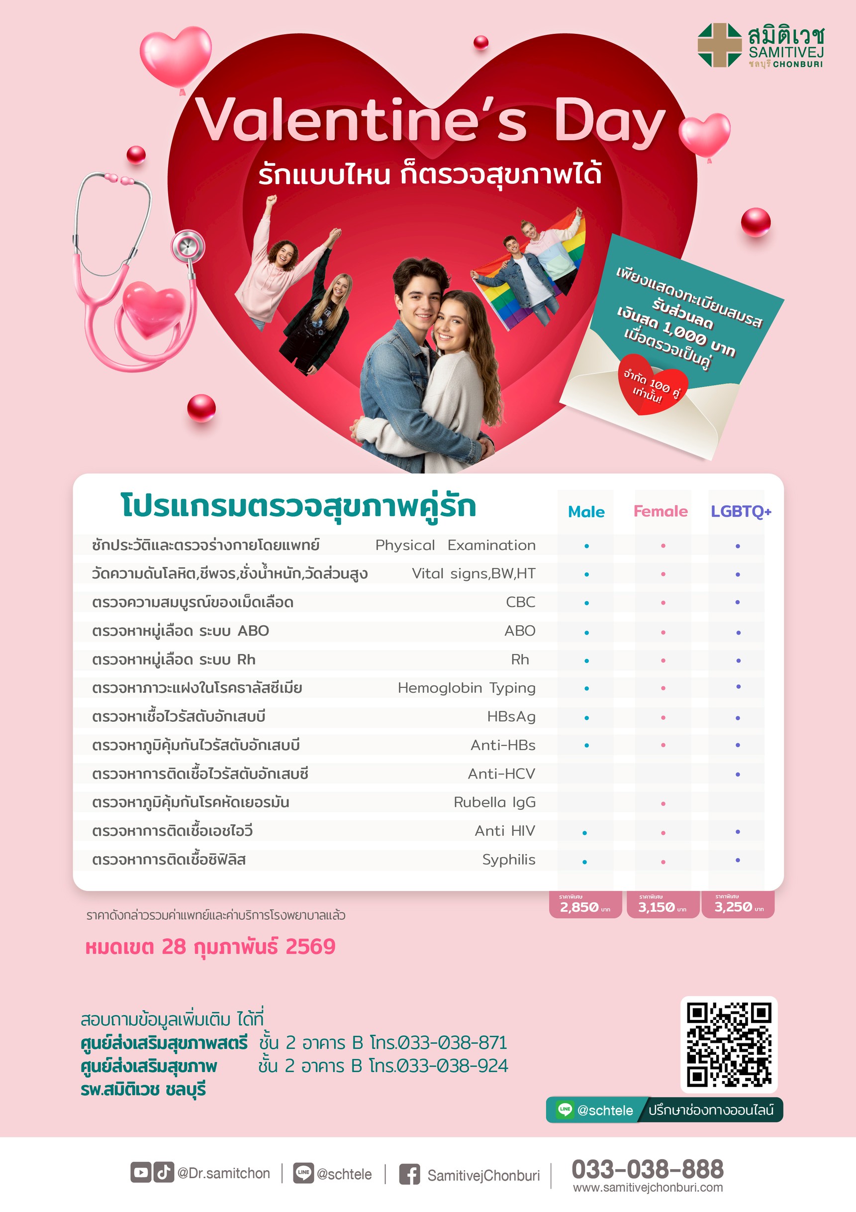 โปรแกรม " ตรวจสุขภาพคู่รัก ราคา 2,850 บาท "